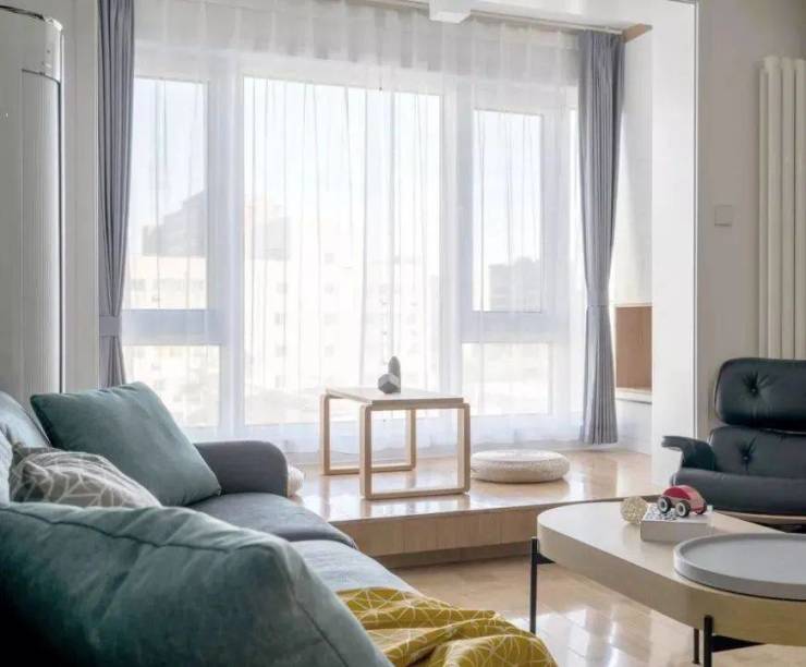 把阳台抬高:这种做法是把阳台抬高,铺上地板后,直接作为矮地台使用,随便放个小桌子,几个小坐垫抱枕就能变成一个休闲区。